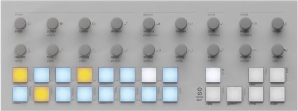 T-1 Special Edition with custom gray knobs and cream white housing. Inspired by legendary drum machines and sequencers from the 1980s and 1990s.