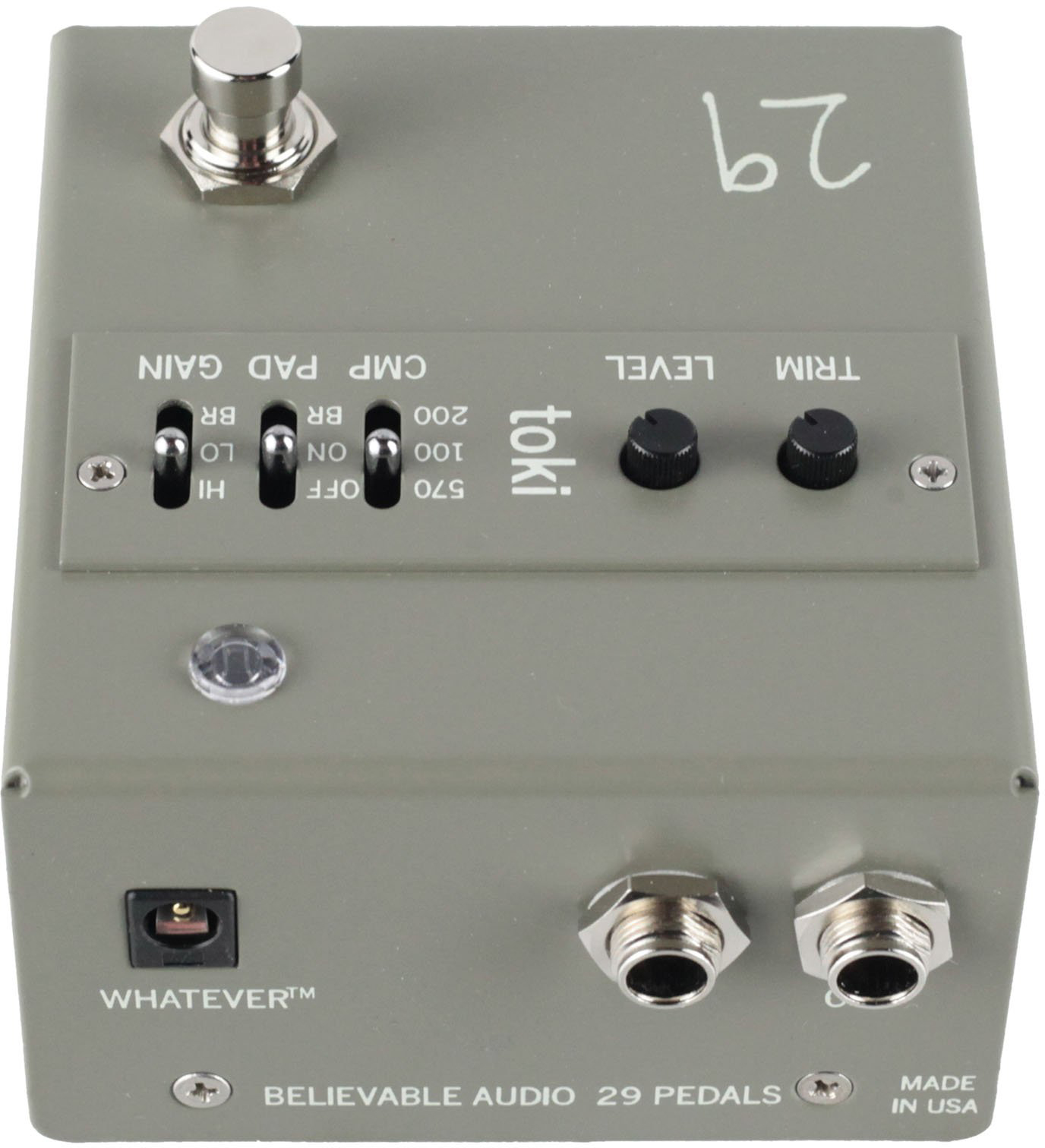 Crafted in California / USA, the 29 PEDALS Toki Fuzzy Driver delivers a wide range of studio quality textured gain sounds, from low-gain overdrive to thick fuzz.