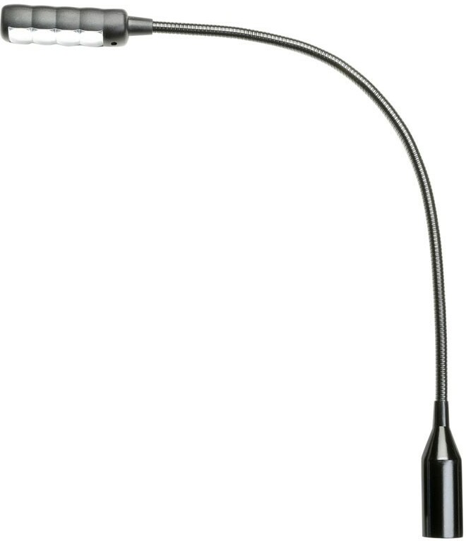 theSLED 1 ULTRA XLR 3 is a matte black gooseneck lamp with 4 exceptionally bright COB LEDs and a 3-pin male XLR connector (balanced input). It is powered by 12 volts or via a micro input under 48 volts (phantom power). The gooseneck, 30 cm long, turns at will and stays in place; for convenience, the On / Off switch is easily accessible at the top of the lamp.