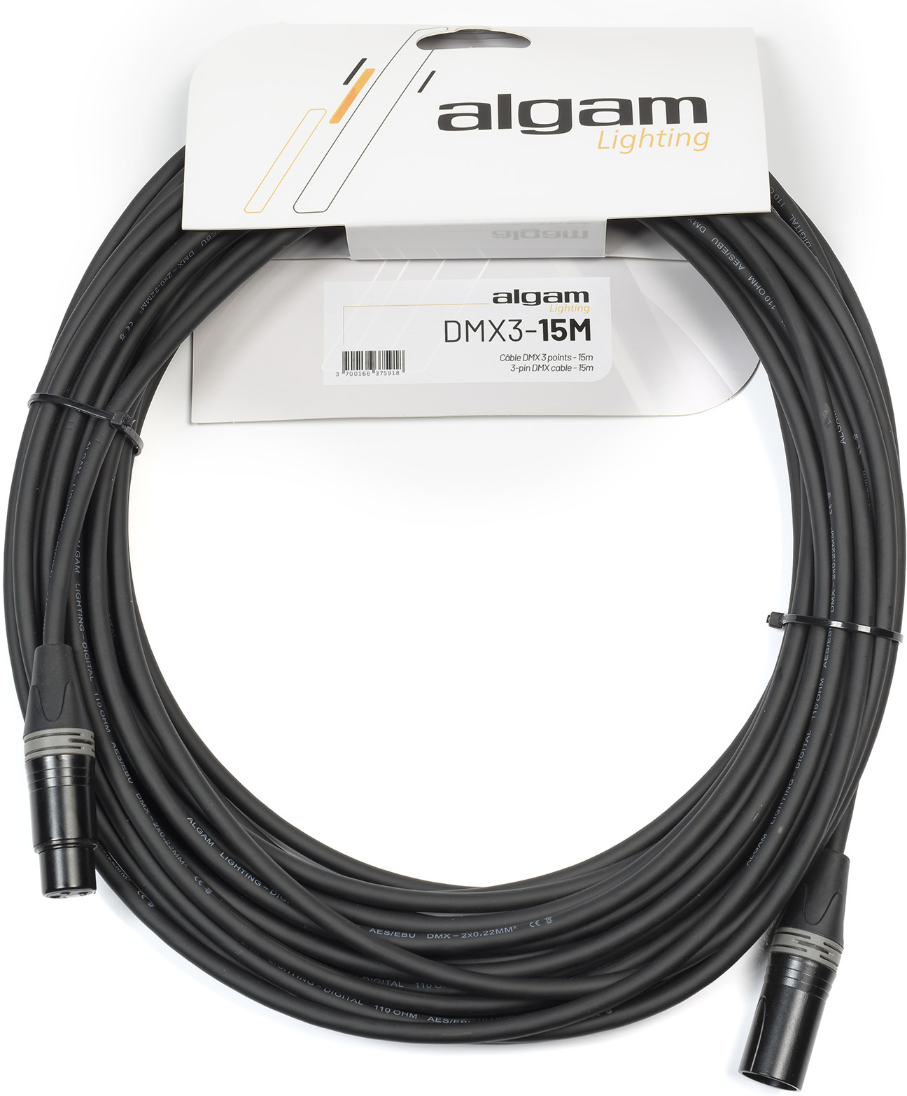 This 15 m 3-point DMX cable developed by Algam Lighting is the ideal solution for connecting your DMX console to your lighting machines, or for chaining systems spaced apart on a stage or structure. Robust and reliable, it guarantees optimal transmission of the DMX signal thanks to its 110Ω impedance, while its 3-point connectors make it an ideal cable for amateur and advanced lighting systems.