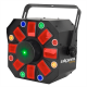The Sunflower, thanks to its 3 complementary effects, ensures animations of a great diversity. The combination of its 18 RGW LEDs of 3 watts each, its stroboscope of 3 white LEDs of 20 watts and its green laser of 150mW offers multiple colour effects of an incredible power to animate your parties. The Sunflower is easy to use, with numerous internal programs for automatic operation or to the rhythm of the music, a master/slave mode and can be controlled via DMX.