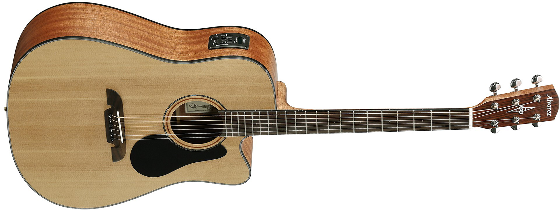 ALVAREZ Artist Series AD30CE is an acoustic/electric Dreadnought cutaway guitar featuring Sitka Spruce top, african Mahogany back/sides, Mahogany neck, Techwood* fretboard and SYS250 EQ with Backlit Tuner preamp.