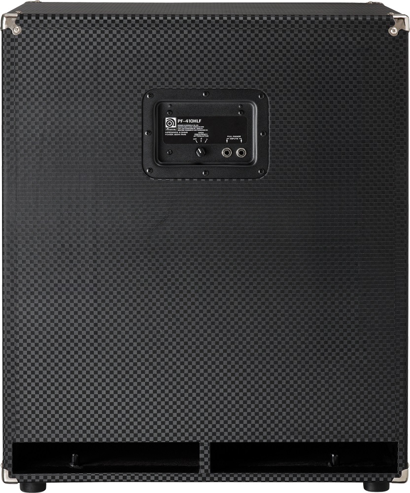 Bass amp cabinet AMPEG Pf-410hlf. The Ampeg PF-410HLF bass enclosure delivers the performance, looks and affordability of the popular Portaflex series in a powerful, shelf-ported design that hits hard and low. Handling 800 watts and featuring four 10? Eminence® drivers and a selectable HF driver, the PF-410HLF is the perfect cab for any high-powered head.
