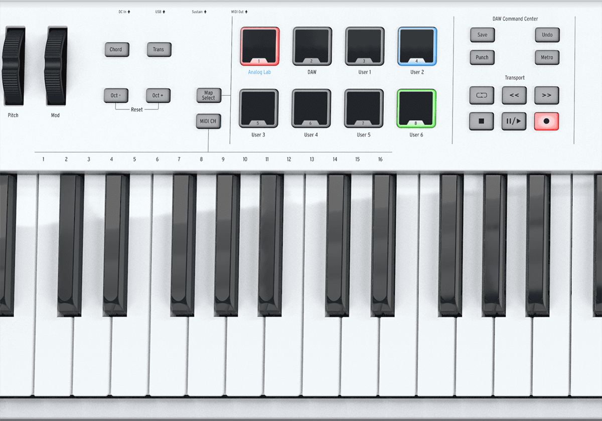 8 pads, 9 rotaries, 9 faders, and an expressive keyboard, but so, so much more. Music is at the heart of this controller. Every aspect of KeyLab Essential has been carefully chosen to give you the best possible experience when creating and performing. KeyLab Essential makes navigating inside your recording software a breeze thanks to the dedicated DAW Command Center, and makes browsing your presets an exciting and inspiring experience.