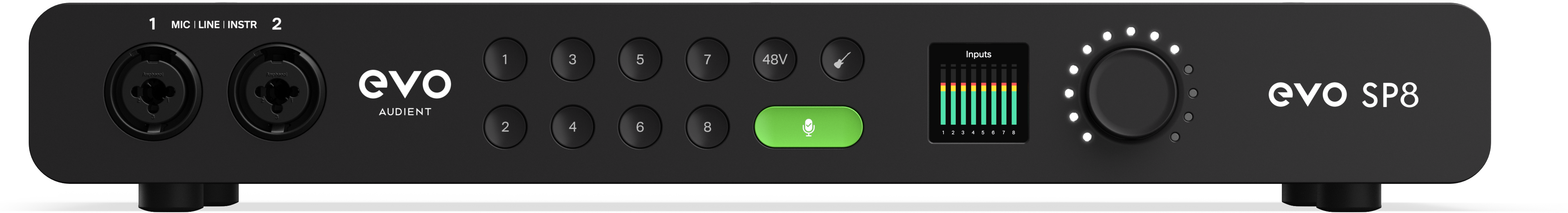 The EVO SP8 is an intelligent eight-channel microphone preamp with built-in 24-bit/96kHz digital converter. The latest addition to the EVO range, it is the perfect extension of an audio interface, continuing the brand's promise