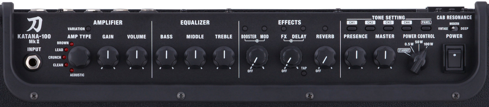 Backed by BOSS's Tube Logic approach, Katana MkII delivers the authentic output distortion characteristics of genuine tube amplifiers, with the sound and feel becoming richer and more responsive as you turn up the volume. But unlike that classic tube amp, Katana MkII's variable Power Control makes it easy to fly in the sweet spot without getting fired from the gig or kicked out of the house. Just throttle back the overall volume as needed to enjoy inspiring, cranked-amp sound anywhere you play, from bedroom to stage.