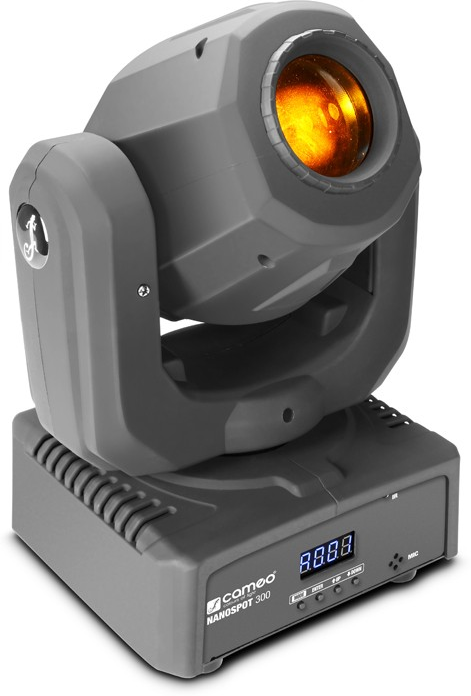 The Cameo NanoSpot 300 is a miniature moving head with 540° pan and 230° tilt that is powered by a single 30W LED.