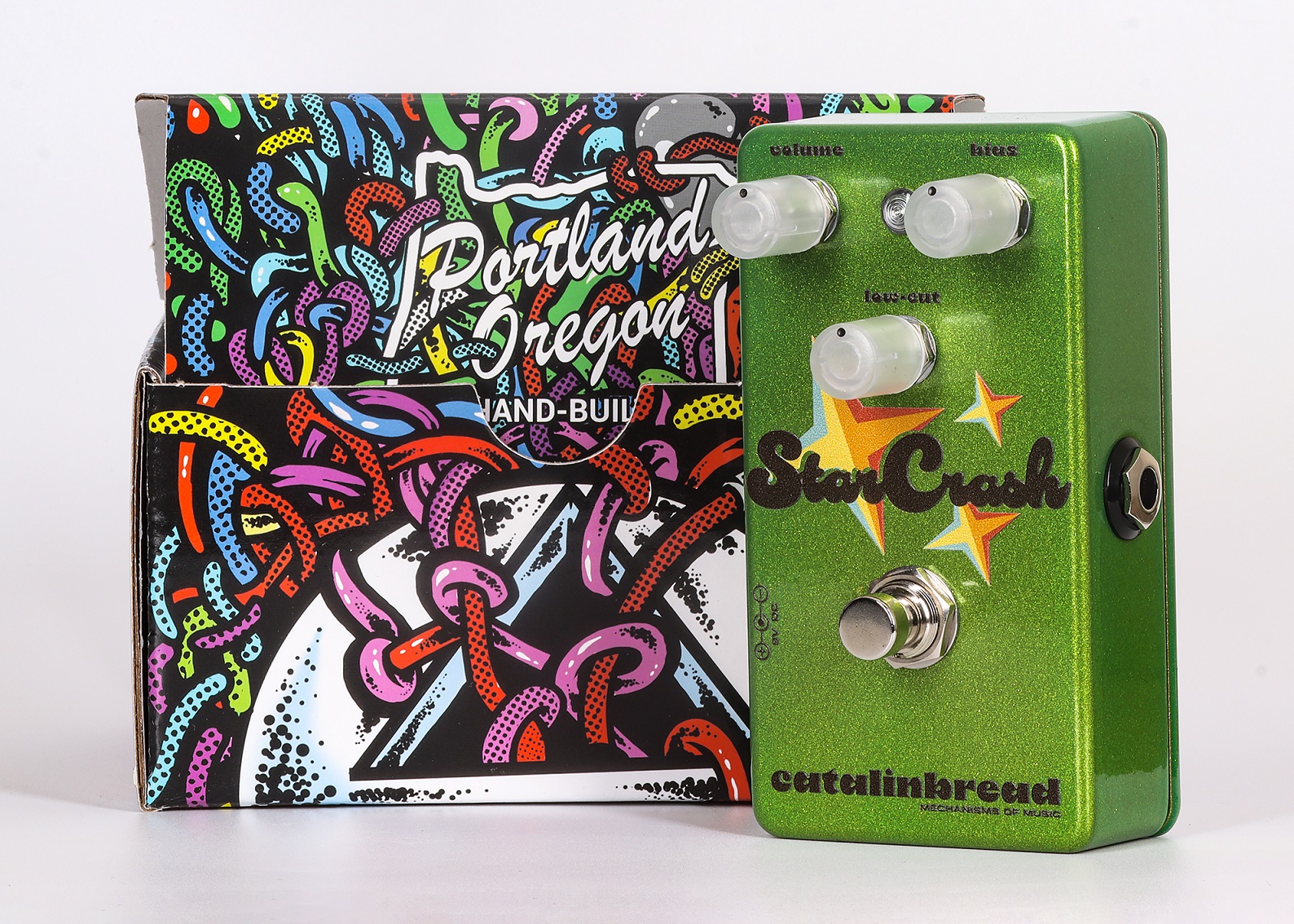 The Fuzz Face debuted in 1966 as a germanium fuzz and by the '70s was switched to silicon for circuit stability reasons but its circuit was barely adapted to its new semiconductors. In light of this, the StarCrash is the '70s fuzz you wish they would have made from the beginning. First, Catalinbread got rid of the Fuzz knob that 95 percent of all players didn't use, while others used their guitar's volume knob instead. Secondly, a handy Bias control, also known as a "dying battery simulator.", to starve the second transistor of voltage and let you dial in the right amount of texture, from raw and brawny to lean and harmonically rich. The Low-Cut control cuts the bass frequencies from 30Hz to 500Hz. While bias and filter controls cut volume, Catalinbread have compensated by giving the StarCrash a little more volume than the typical "Face" circuit, so you can still push your amp regardless of knob settings.