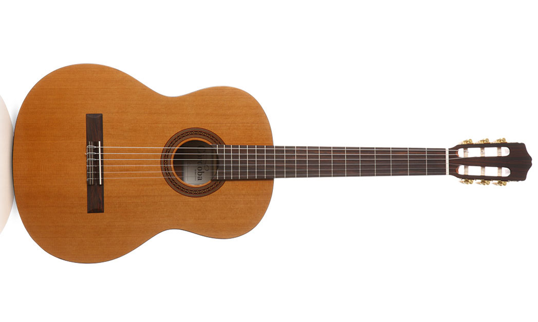 One of the original models of the Iberia series, the CORDOBA Iberia Cadete C5 is a full size acoustic nylon-string guitar with a solid Canadian cedar top, mahogany back and sides and a rosewood fingerboard. Handmade in the traditional Spanish style, the C5 also features an all wood inlaid rosette, rosewood binding, hand carved headstock, fan bracing system, and bone nut and saddle.