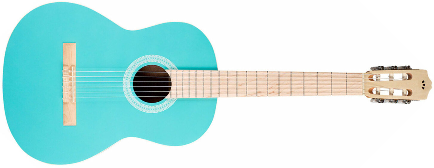 A fresh take on the traditional aesthetic of the nylon-string guitar, the Matiz series combines maple accents and traditional tone woods in 4 eye-catching colors : Aqua, Coral, Pale Sky, and Classic Blue.
