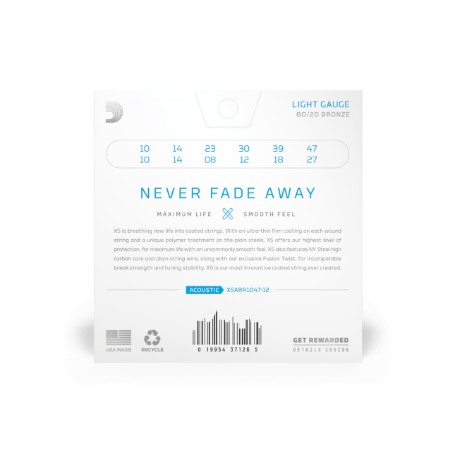 - XS 80/20 Bronze strings have the longest life and brightest tone of any D'Addario coated acoustic guitar string, thanks to their ultra-thin XS coating film.