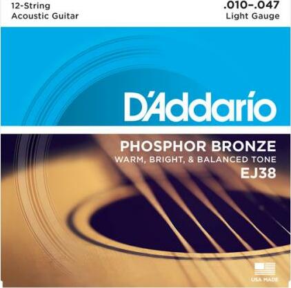 D'addario Phosphor Bronze EJ38 12-strings Light 10-47 - snarenset