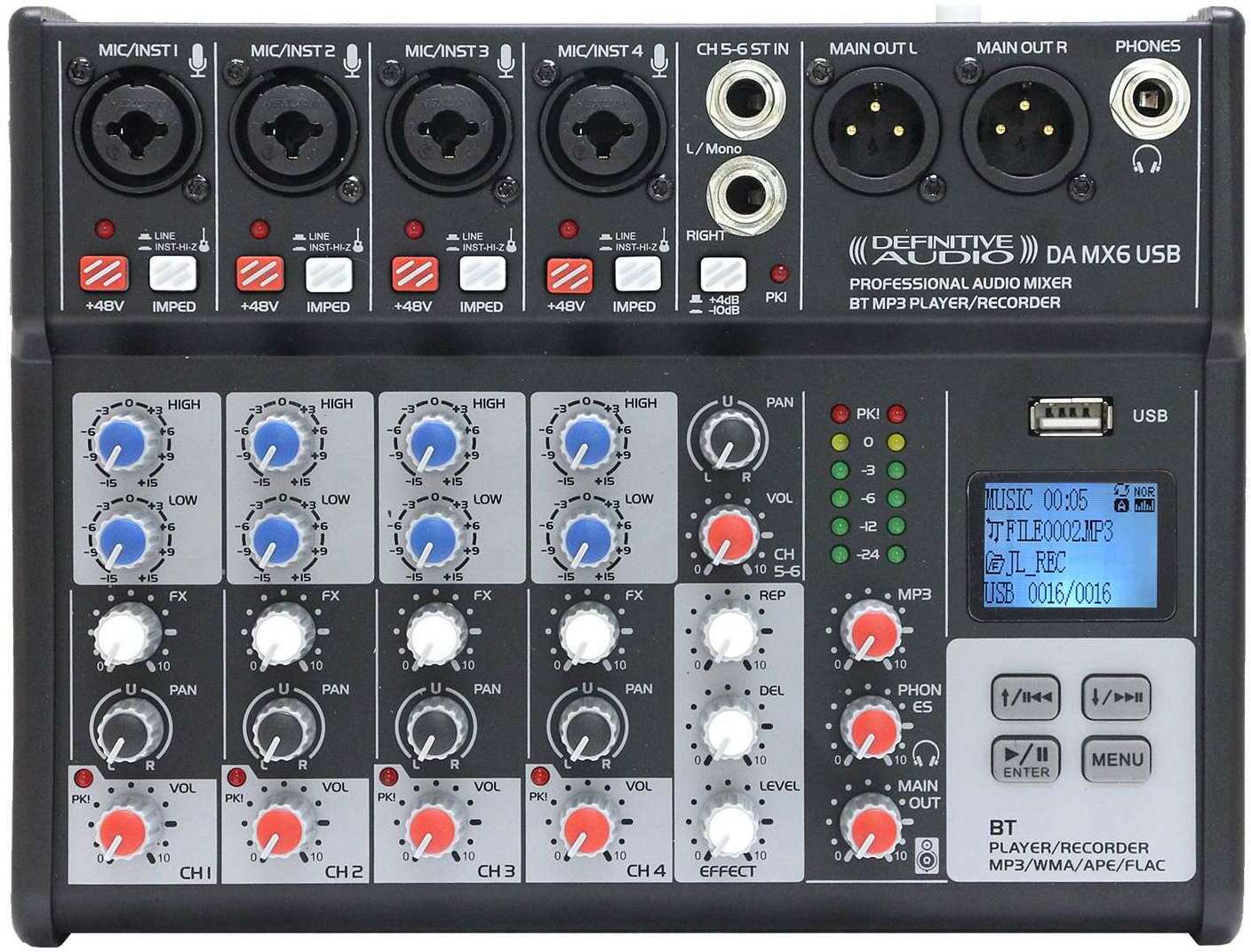 The Defintive Audio DA MX 6usb is a 5-channel analog mixer.