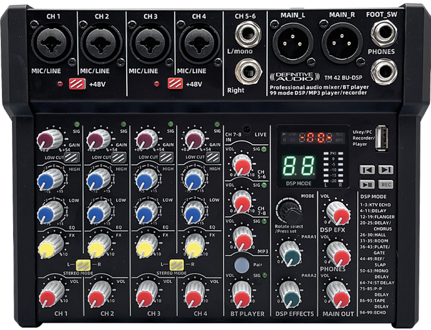 The Definitive audio TM 42 BU-dsp is a 7-channel USB analog mixer.