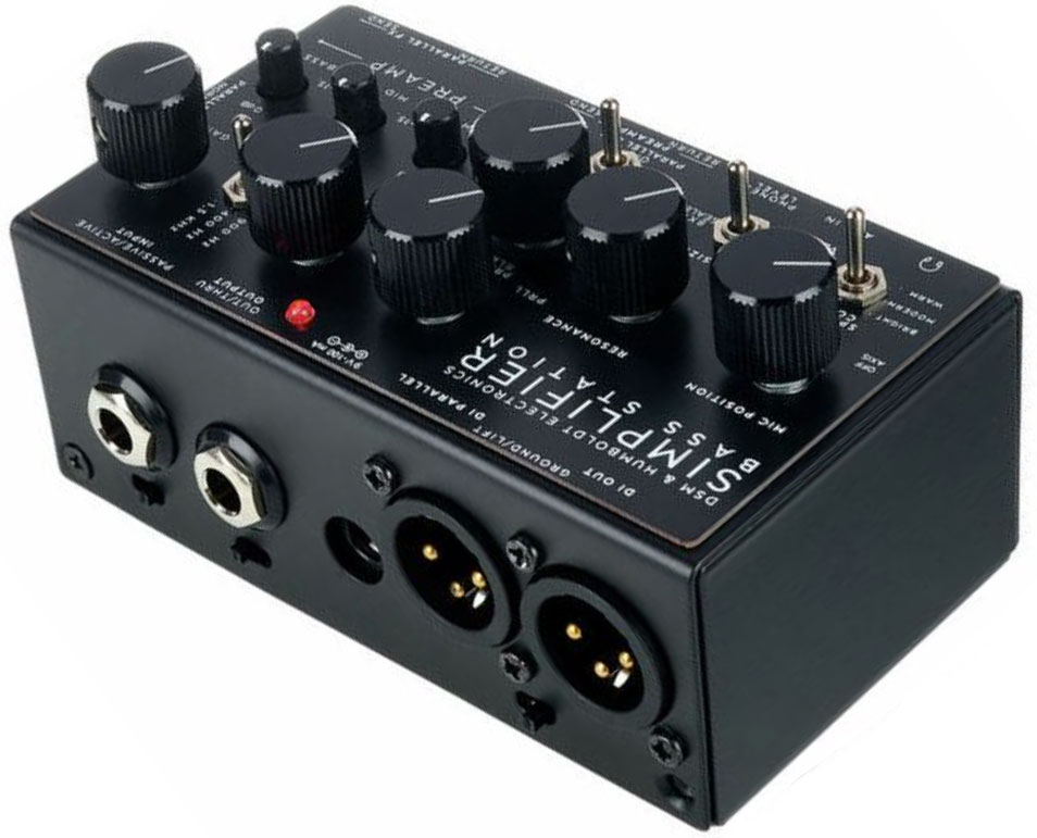 DSM & HUMBOLDT Simplifier Bass Station is everything you ever needed to go direct to the FOH or recording amazing bass tones without sacrificing anything. It includes a Bass Preamp with gain, level, and a 3 band EQ with semi-parametric mid control. A parallel signal routing with a selectable LPF, dual FX loop (for preamp and parallel signal), and an amazing analog cabinet simulation, based on the acclaimed Omnicabsim ® by DSM Noisemaker.