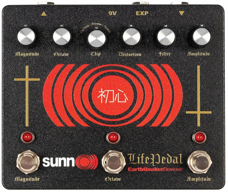 Sunn O))) and EarthQuaker Devices are pleased to bring you the Sunn O))) Life Pedal V3. The Sunn O))) Life Pedal circuit has been meticulously tweaked from the original to squeeze every last drop of heavy crushing tone available. The octave section has been fine tuned to make it more pronounced without losing the bottom end and we added a third footswitch, utilizing Flexi-Switch Technology®, for the octave to allow an additional method of quick and radical tone shaping. We are excited to have this back in permanent production, it is a true labor of love.