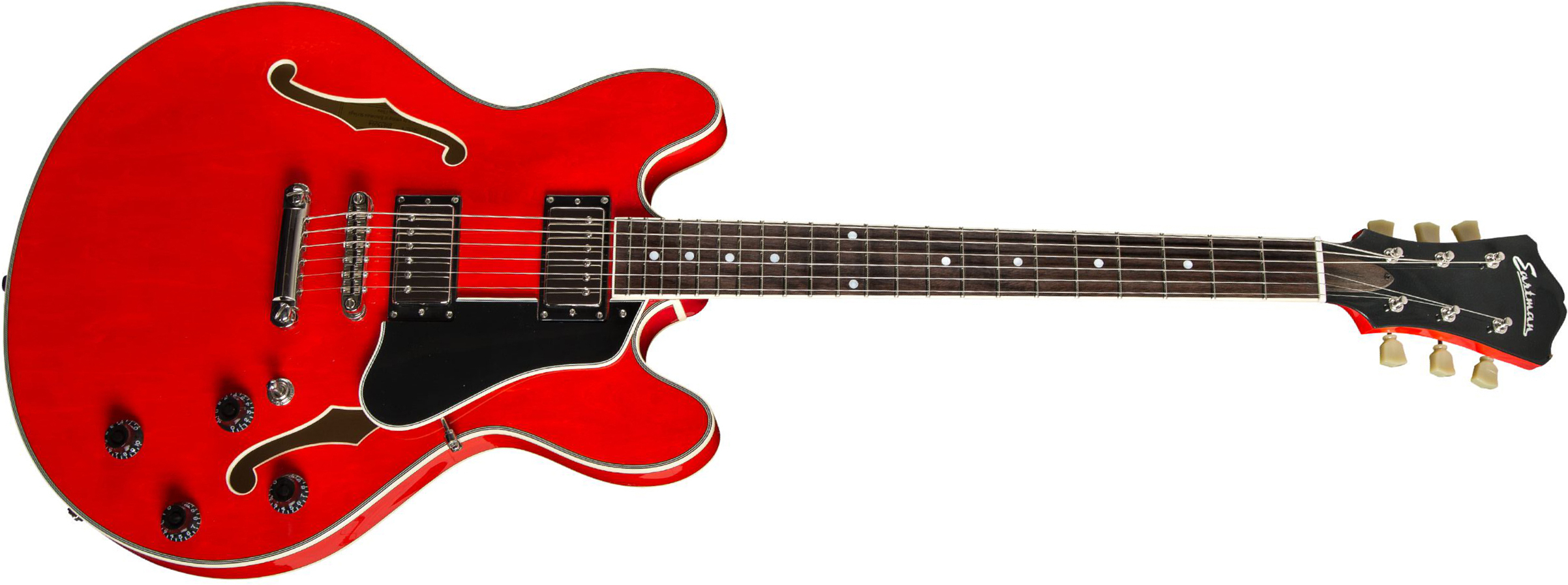 Ostensibly inspired by an american classic double cutaway semi-hollow, EASTMAN Archtop Laminate T386 (50265) is a high quality and versatile instrument featuring layered Maple top/back/sides, Maple set-neck, Ebony fingerboard and Kent Armstrong HPAN-1 humbucking pickups.