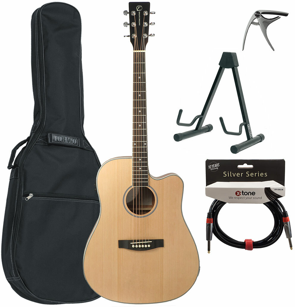 Whether you're a beginner or more experienced guitarist, the EASTONE DR100CE-NAT +bag +Accessories acoustic/electric pack is basically composed around an amazing DR100CE Dreadnought with cutaway.
