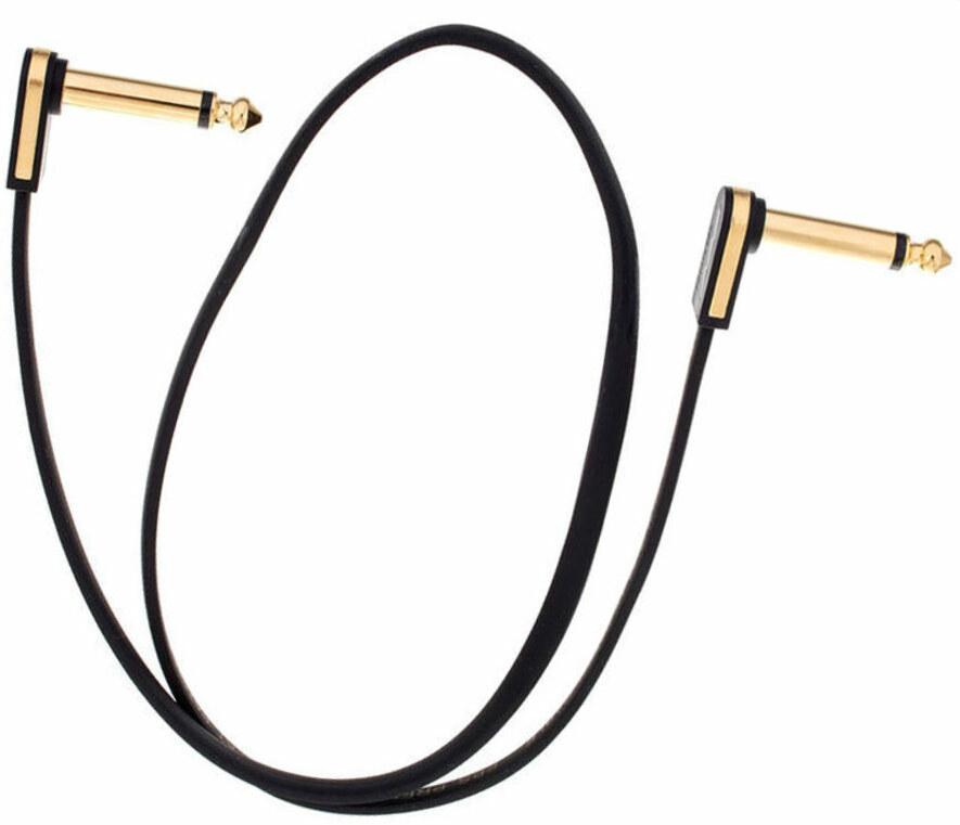 EBS PG-58 Premium Gold Flat Patch Cable : 58 cm, Contact housing made of 24 Carat Gold Plated Die Cast welded Zink. 24 Carat Gold Plated 1/4" Contacts. Ultra Compact and double shielded Flat Patch Cable. Probably the smallest and most compact patch cables available in the World right now. Very low resistance and capacitance keeps your sound uncolored without signal loss. Premium Quality at a very affordable price! The Premium Gold is even more compact than the EBS PCF cable, and also with improved performance.