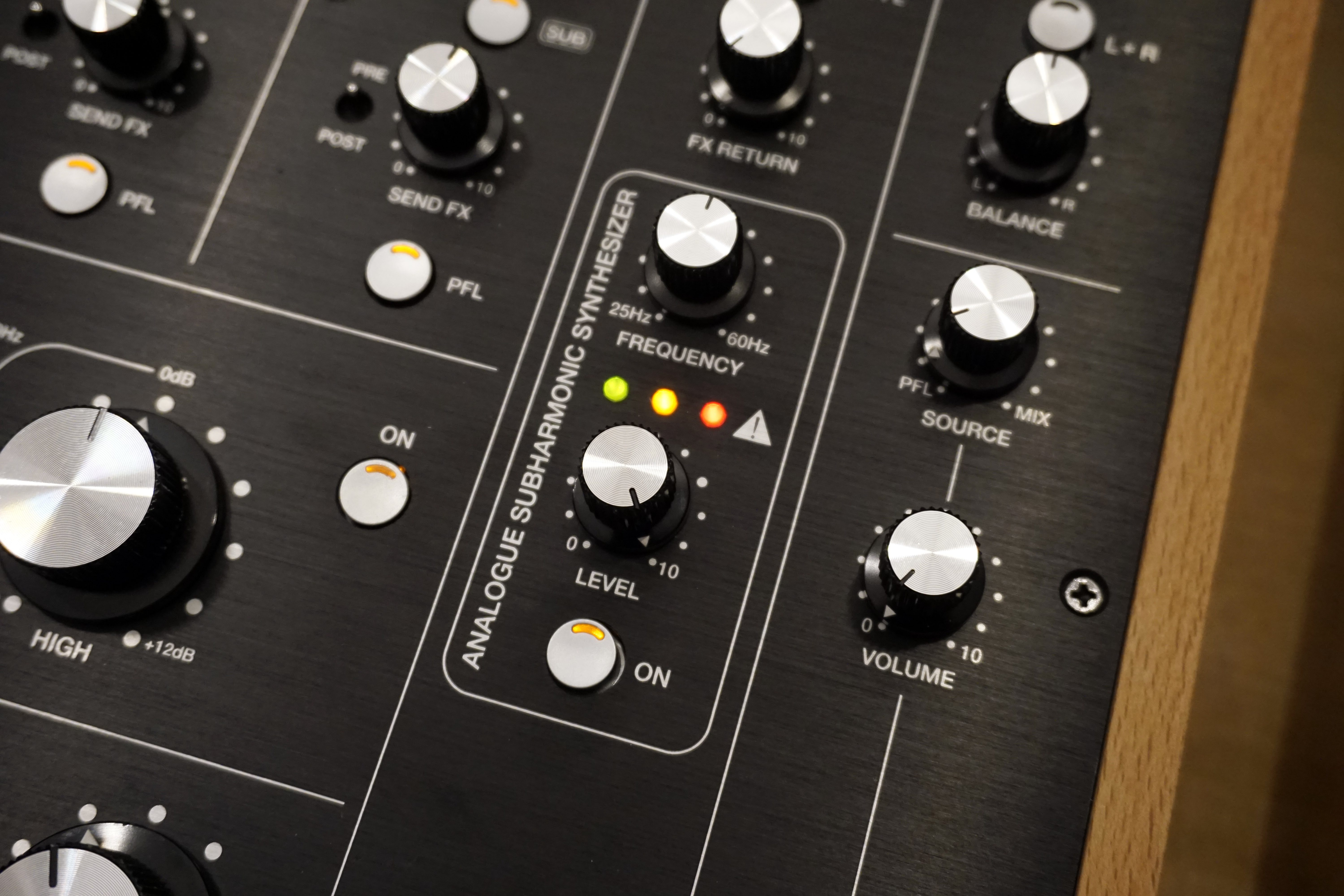 - De DJ mixer heeft een unieke functie: een selecteerbare analoge subharmonische synthesizer per kanaal, speciaal ontworpen om ultra-lage frequenties te genereren en te versterken.