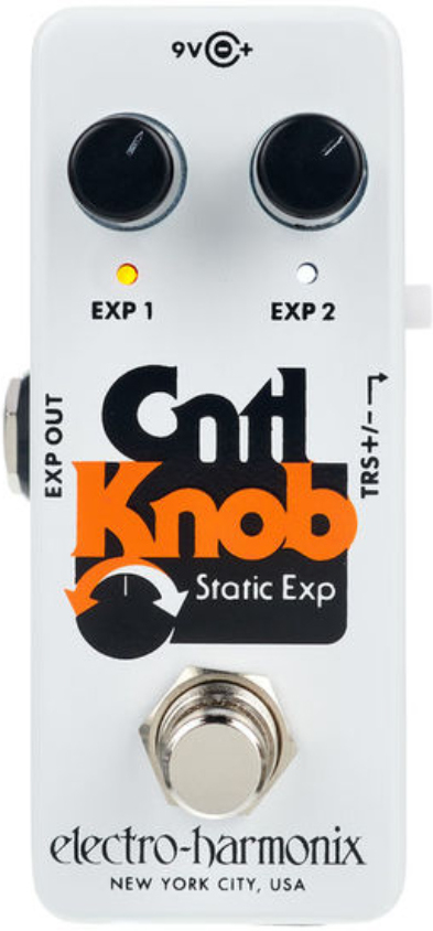 The EHX CNTL Knob Static Expression Pedal is an affordable, compact, easy-to-use pedal that delivers static remote control for devices with expression control jacks. It lets you set two preset values that represent two positions of a traditional expression pedal and toggle between them with its footswitch.