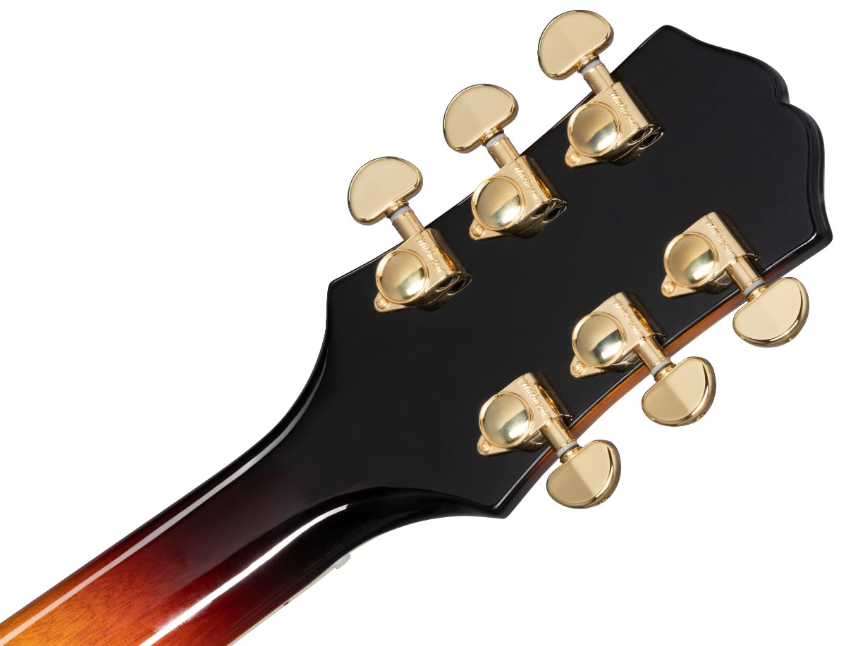 One of Epiphone's most storied guitars, the Sheraton returns in a democratic package. This elegant EPIPHONE Archtop Original Sheraton (EOSHVSGH1) features a semi-hollow body crafted from layered maple with a maple centerblock for feedback resistance.