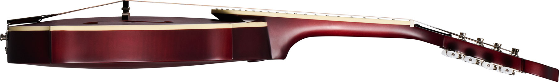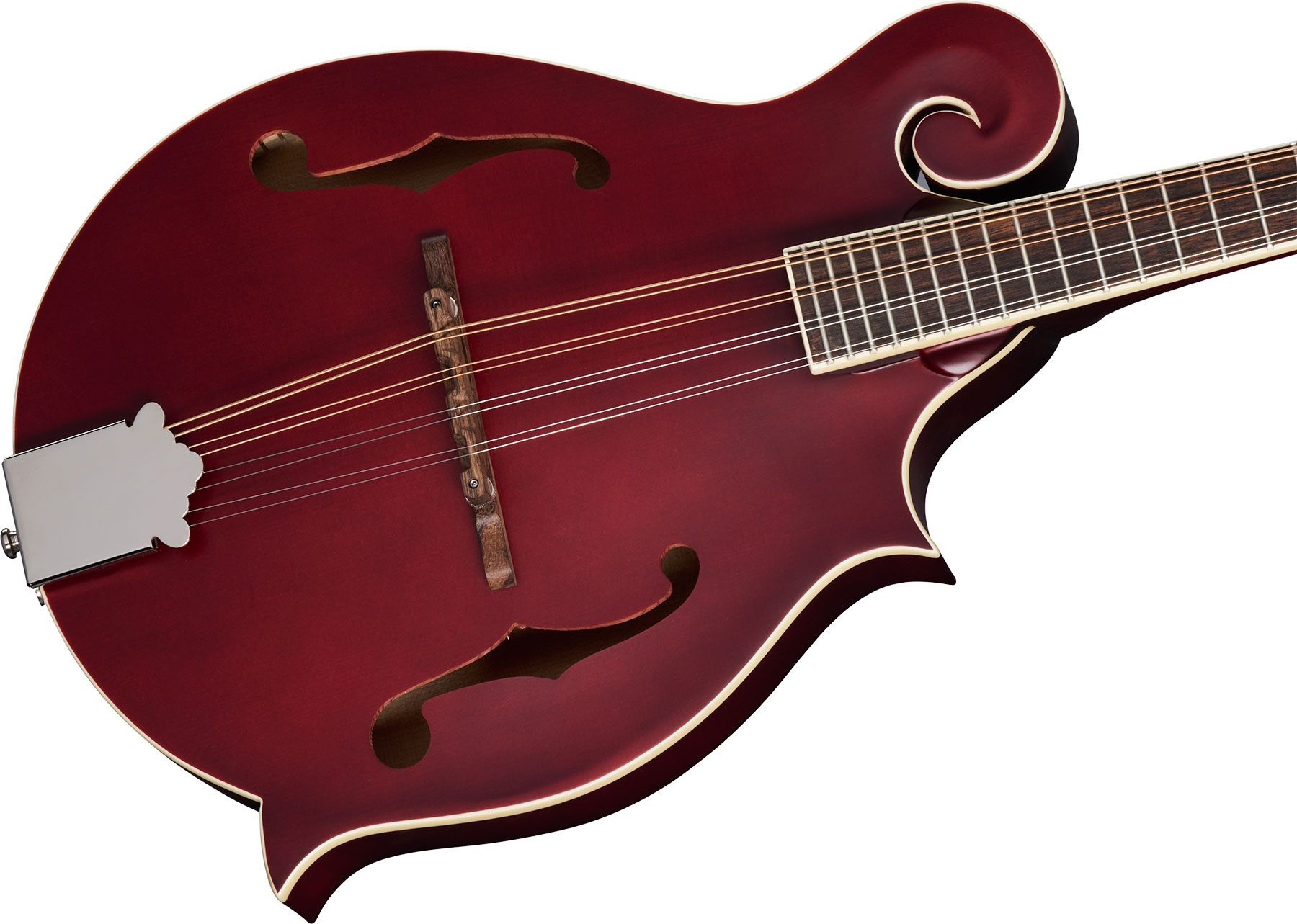 Epiphone is proud to release its latest mandolins. The EPIPHONE Bluegrass Inspired By Gibson Original Collection F-5 Studio (EIGMF5SWRSNH1) is based on the legendary Loar-designed F-5 and makes a high-quality F-5 style mandolin more accessible than ever. It features all-solid wood construction with a solid maple back and sides and a solid Sitka spruce top. The maple neck is attached to the body with a glued dovetail joint and has a laurel fretboard with 20 frets and a Gibson-style scroll headstock with vintage-style tuners with pearloid buttons.