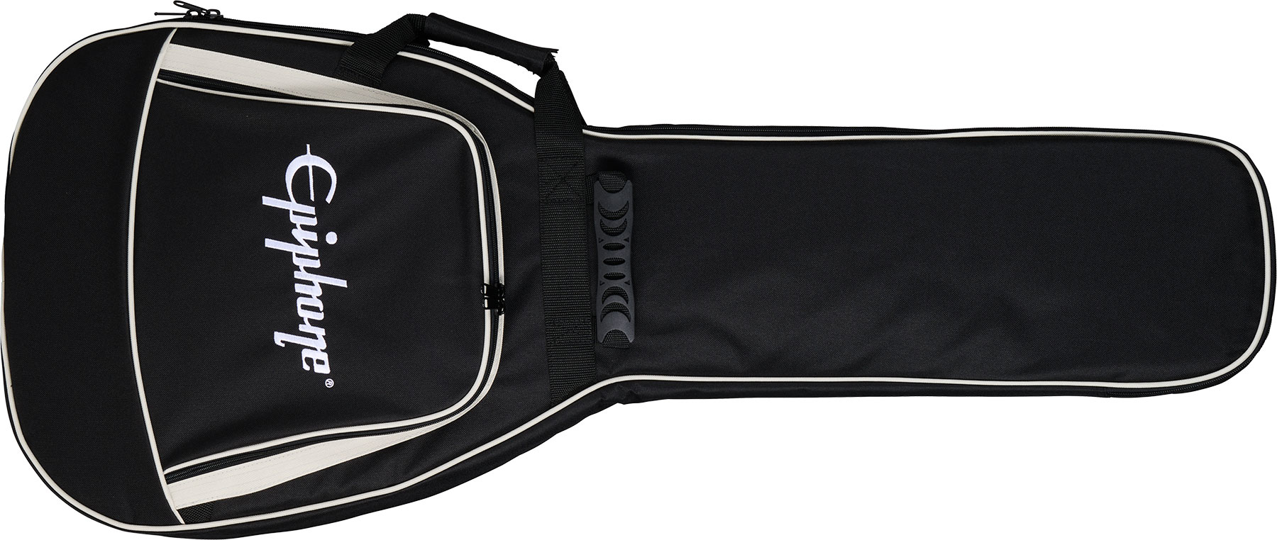 The bound headstock has Grover® Mini Rotomatic® tuning machines and is adorned with the Epiphone logo and Custom Split Diamond inlay, both in mother of pearl. The Grover tuners, Graph Tech™ nut, and the fully adjustable Epiphone LockTone™ Tune-O-Matic™ bridge and Stop Bar tailpiece all work together to keep the tuning stability and intonation on point.
