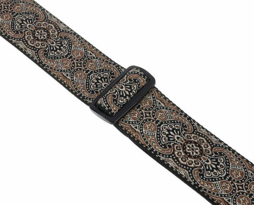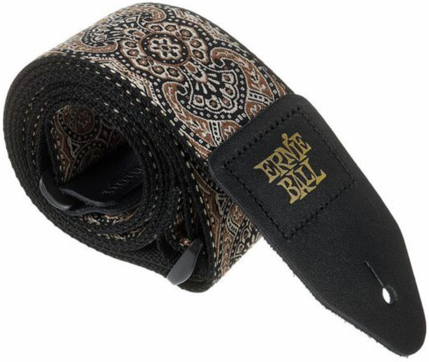 The world's number one polypro guitar strap is available in an array of stylish new designs, featuring machine-stitched leather ends with durable yet comfortable polypropylene webbing. Extra long design for any application. ERNIE BALL P04163 Gold & Black Paisley Jacquard 2 Inches Guitar Strap length measures 41 inches to 72 inches at total length.
