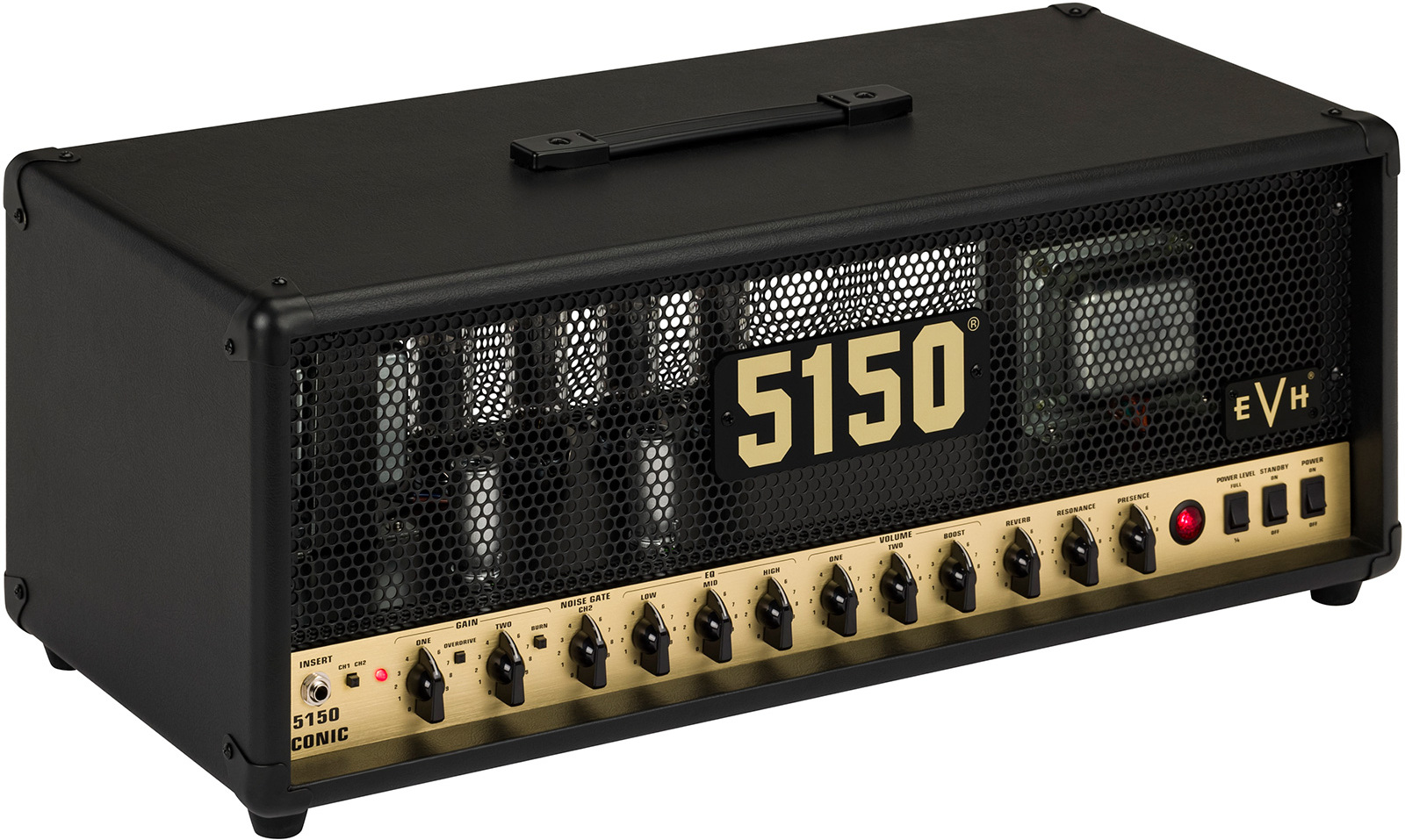 Sporting sophisticated and distinctive EVH style, the 5150 Iconic Series 80-watt head is wrapped in Black textured vinyl with a brushed gold anodized aluminum front panel and black steel grille featuring gold and black 5150 and EVH logo badges. This head is finished off with vintage-style chicken-head knobs, red LED jewel indicator and molded black plastic top handle.