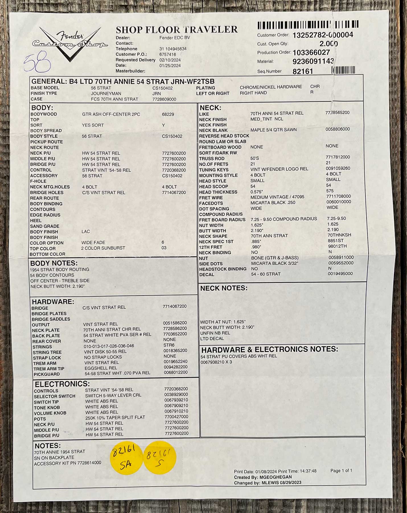 - FENDER Custom Shop Limited Edition 70th Anniversary 1954 Stratocaster Journeyman Relic Wide-Fade 2-Color Sunburst