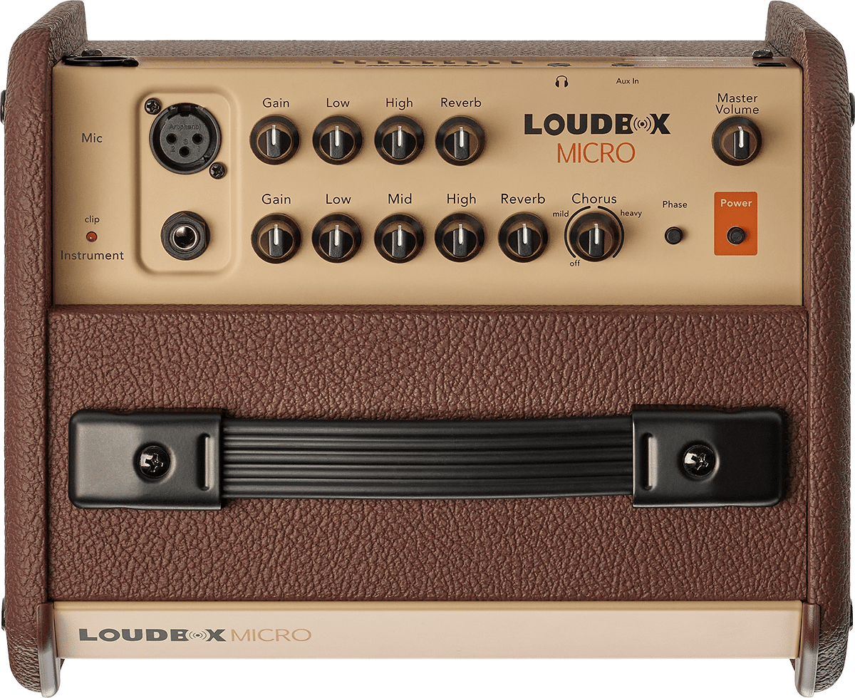 Loudbox Micro packs 40 watts of clean acoustic power into a lunchbox-sized acoustic combo. A sealed cabinet design paired with a bi-amplified driver configuration generates rich, full tone from your acoustic instruments.