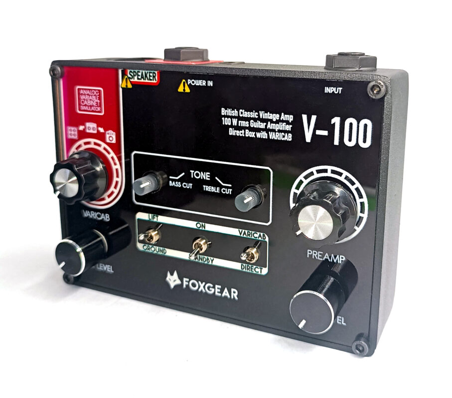 The V-100 is clearly inspired to 60’s era of Vox Amplifiers, and exactly reproduces that kind of tone. Big Headroom, punch, Mids, and brilliant High frequencies that made it one of the most characteristics tone in the rock history. Our Miniamp series is designed to be the best friend of any pedals and offers the best solution for rehearsals, gigs, home practice, studio applications, without compromises. The Analog Variable Cabinet Simulator is a 100% analog simulation of different EQ curves that speakers and microphones apply to your amplifier in real life, and with a simple and effective knob, makes you able to find your best sweet-spot to make the direct out sounds exactly like your real speaker behind your back. It is not just another post EQ control, it works on the feedback of certain frequencies, making the cab simulator so much powerful and versatile. V-100 offers you an exact emulation of the Vox AC30 preamp section with his legendary yet weird tone stack with bass cut and treble cuts. Just bring your V-100 into your gig bag and connect it to any speaker, to any PA, simultaneously or even just the XLR out with any cab connected. No regrets, No tone compromises.