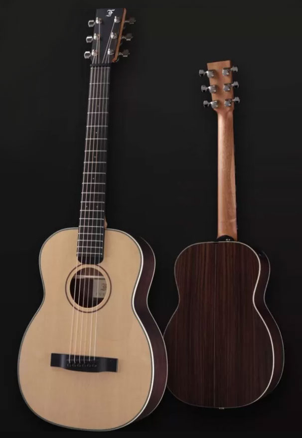 The FURCH Travel Little Jane LJ 11-SR is a unique travel acoustic guitar with solid tonewoods (AA Sitka Spruce, AAA indian Rosewood, Ebony fingerboard), designed to give you the freedom to take your instrument with you wherever you go. Our proprietary assembly system allows the guitar to be easily and quickly assembled into a full-fledged instrument. Likewise, the instrument can be simply disassembled into a compact form and stored in a travel bag with the size of a regular backpack.