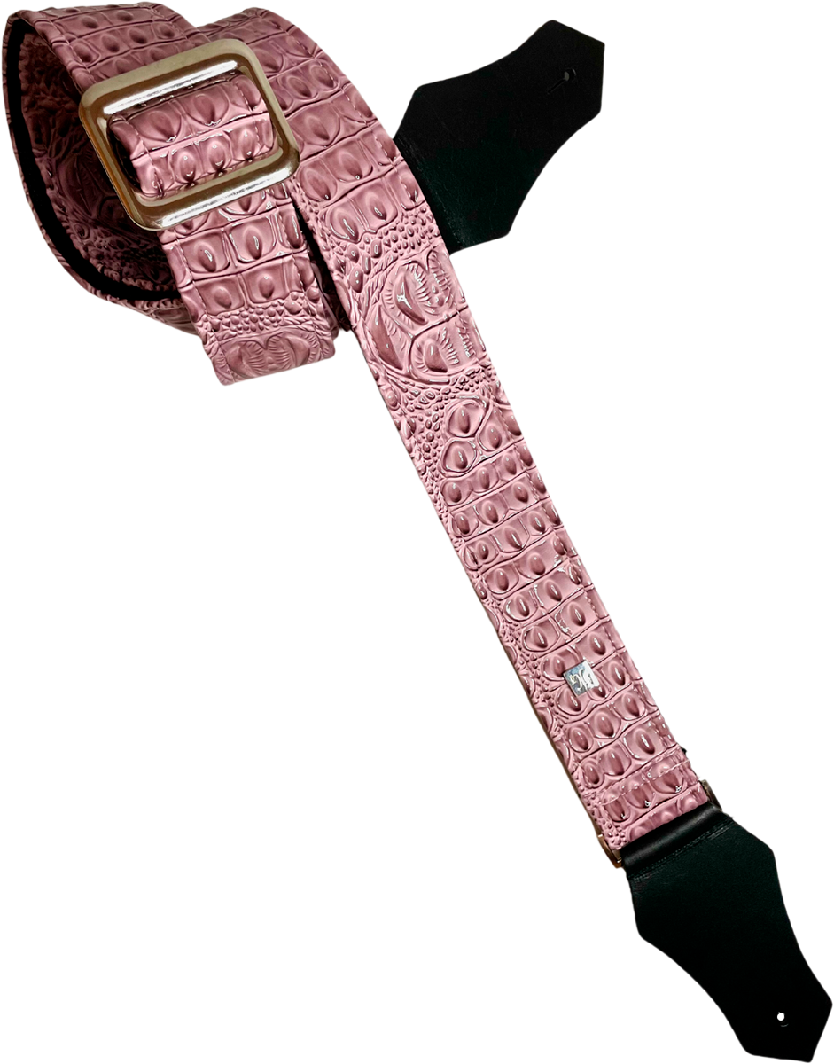 The Aussie Gator straps boast a 3D embossed faux leather coating. Each finish is sumptuous, glossy, and features multiple shades. Due to the varied color tones and textured nature of the embossed material, each strap is unique and exhibits finish variations. The Dusty Lilac option offers soft lilac hues with dark tones reminiscent of deep plum. With fully adjustable lengths up to 165 cm, these straps are perfect for guitarists of all sizes! Their shiny nickel-plated metal hardware is free from heavy metals and harmful substances.