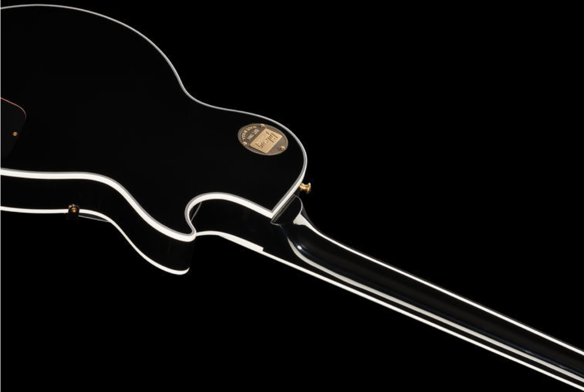 Beneath the layers of its "tuxedo" appointments lies the crisp, edgy voice of a matched 490/498 humbucker set, a solid Ebony fingerboard, a long neck tenon for maximum sustain and a two-piece maple top over a solid mahogany body which adds the perfect amount of sonic bite to everything from jazz to hard rock. It sounds as good as it looks, and it looks as good as it sounds!