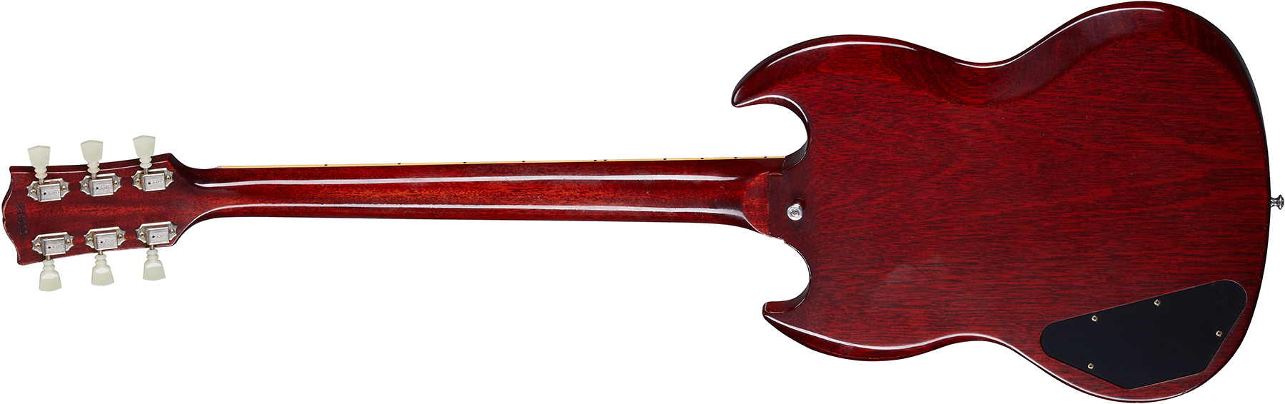 For all those reasons, the Gibson Custom Shop is proud to present the 1964 SG Standard Reissue. Along with the Maestro Vibrola and chunky neck profile, it has all the hyper-accurate vintage specs one could possibly want -- original construction methods, a real red aniline dye finish, chemically-recreated plastics, replica electronics, and more. The result is perhaps the best looking, feeling and sounding SG Reissue yet.