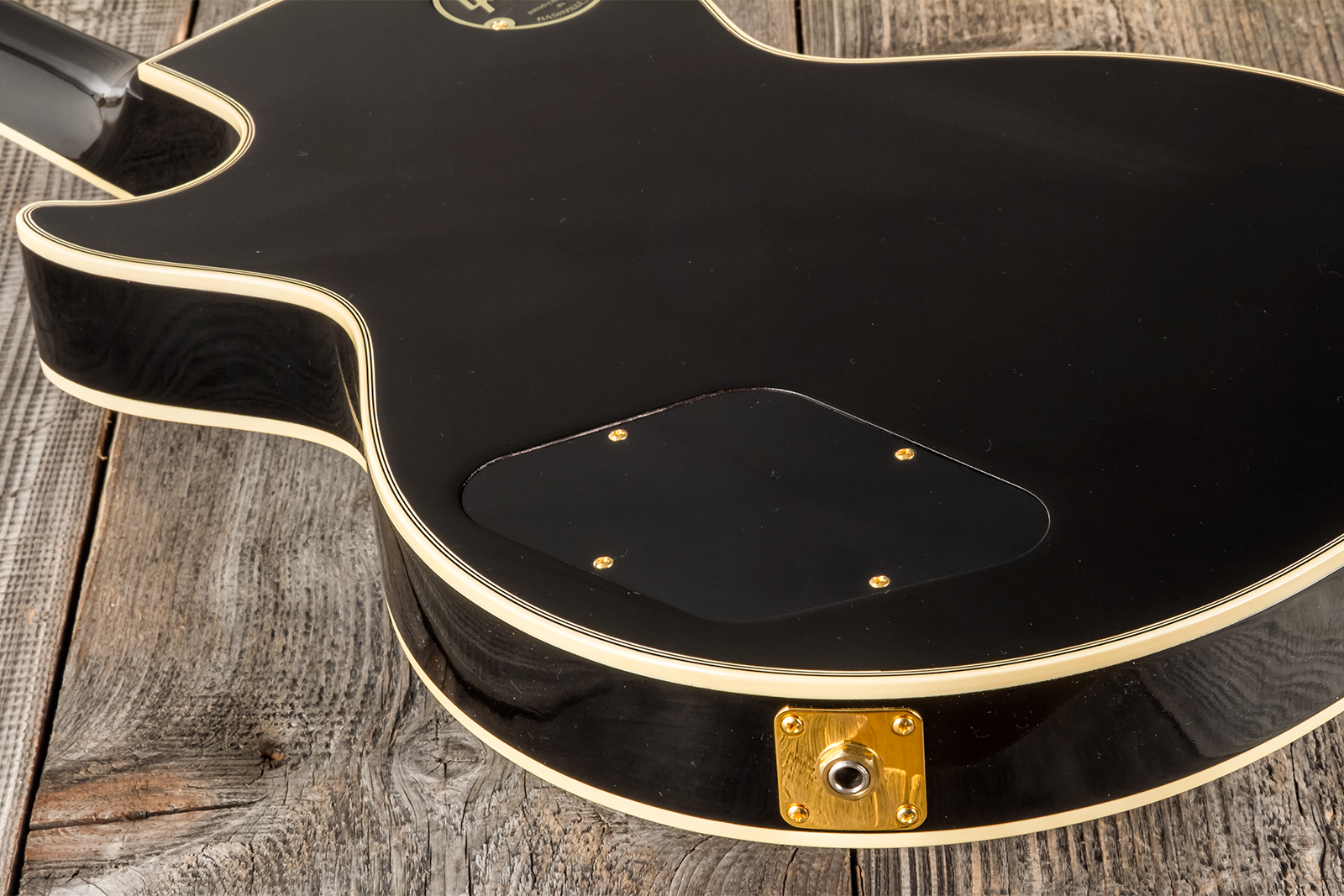 It has all of the classic Les Paul Custom cosmetic appointments, along with a weight-relieved ultra-lightweight mahogany body, gold hardware, Grover® tuners, Schaller Strap Locks, and three open-coil Custombucker humbuckers™.