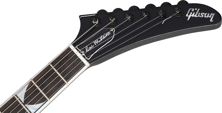 The mahogany Flying V-style body is equipped with a Tune-O-Matic™ bridge, a Stop Bar tailpiece, and a Dave Mustaine signature Seymour Duncan® Thrash Factor pickup set.