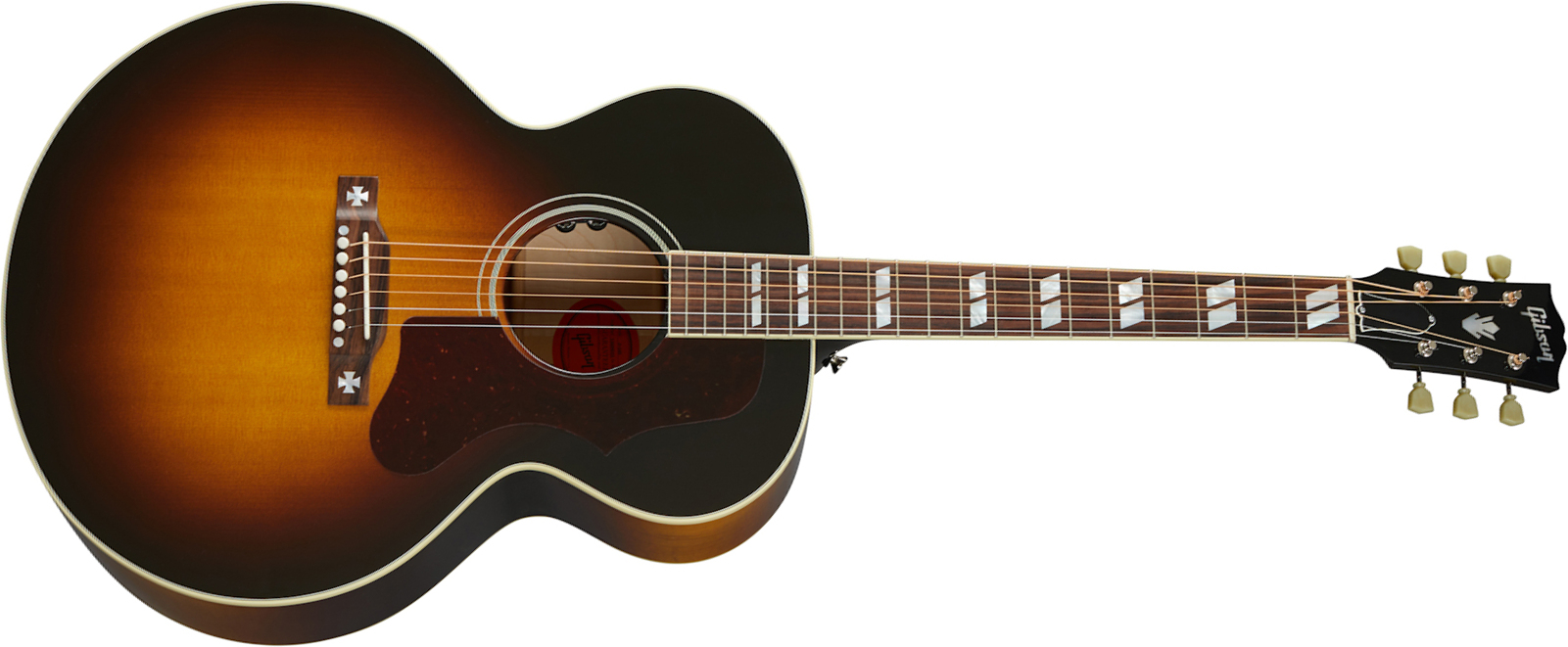 The J-185 is believed by many to be one of Gibson's best acoustic instruments, yet it seems to be fairly obscure, much to the delight of devoted Gibson lovers. Originally released in the early 1950s and designed to be slight smaller than its larger companion, the SJ-200, the J-185 still offers superior performance and tone. The GIBSON Original Acoustic J-185 (OCJB85VS) acoustic/electric guitar maintains unsurpassed balance of lows, mids, and highs, with equal response to every note on the fretboard. Acclaimed by many as the perfect body size and shape for any player.