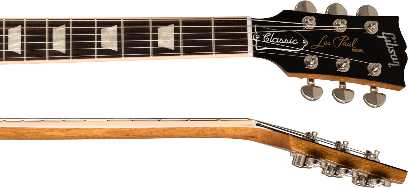 The GIBSON Modern Collection Les Paul Classic (LPCS00HBNH1) solid body electric guitar, merges the early 60's style Les Paul model with some functional and time-tested modifications. As expected, the LP Classic is crafted with a mahogany back and maple top coupled with a slim taper mahogany neck and bound, rosewood fingerboard. Burstbucker 61R & 61T zebra, open-coil pickups provide classic Gibson tones from the era with a bit of extra punch thanks to the open coils. The control assembly features 4 push-pull pots which provide choices of coil tapping, phase switching and pure bypassing for functional and versatile sonic variety.