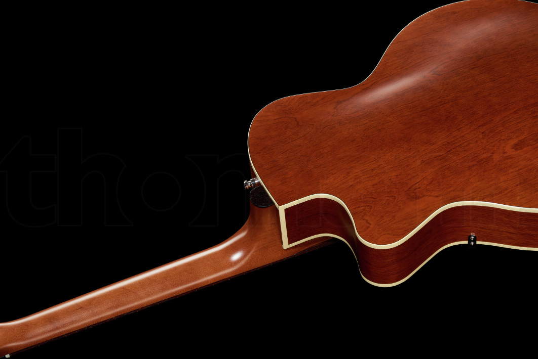 Made from Canadian Wild Cherry, the body of the 5th Avenue features a molded arched top and back, as well as an adjustable bridge, classic F-holes, contoured high-gloss headstock, floating pickguard, and cream binding. Also, the rustic beauty of its Custom Polished Finish creates a gorgeous satin sheen reminiscent of the 19th century.