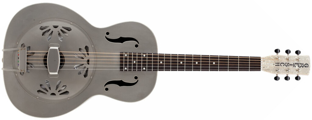 One chord of the GRETSCH G9201 Honey Dipper Round-Neck Brass Body (271-7013-000) Resonator Guitar, transports you back 80 years, when workers congregate in camaraderie and the comforting and captivating strains of a real all-metal resonator guitar waft through the smoke of oil-drum fires and enchant the ears with a sound like raindrops beating on a rusty pump house roof.