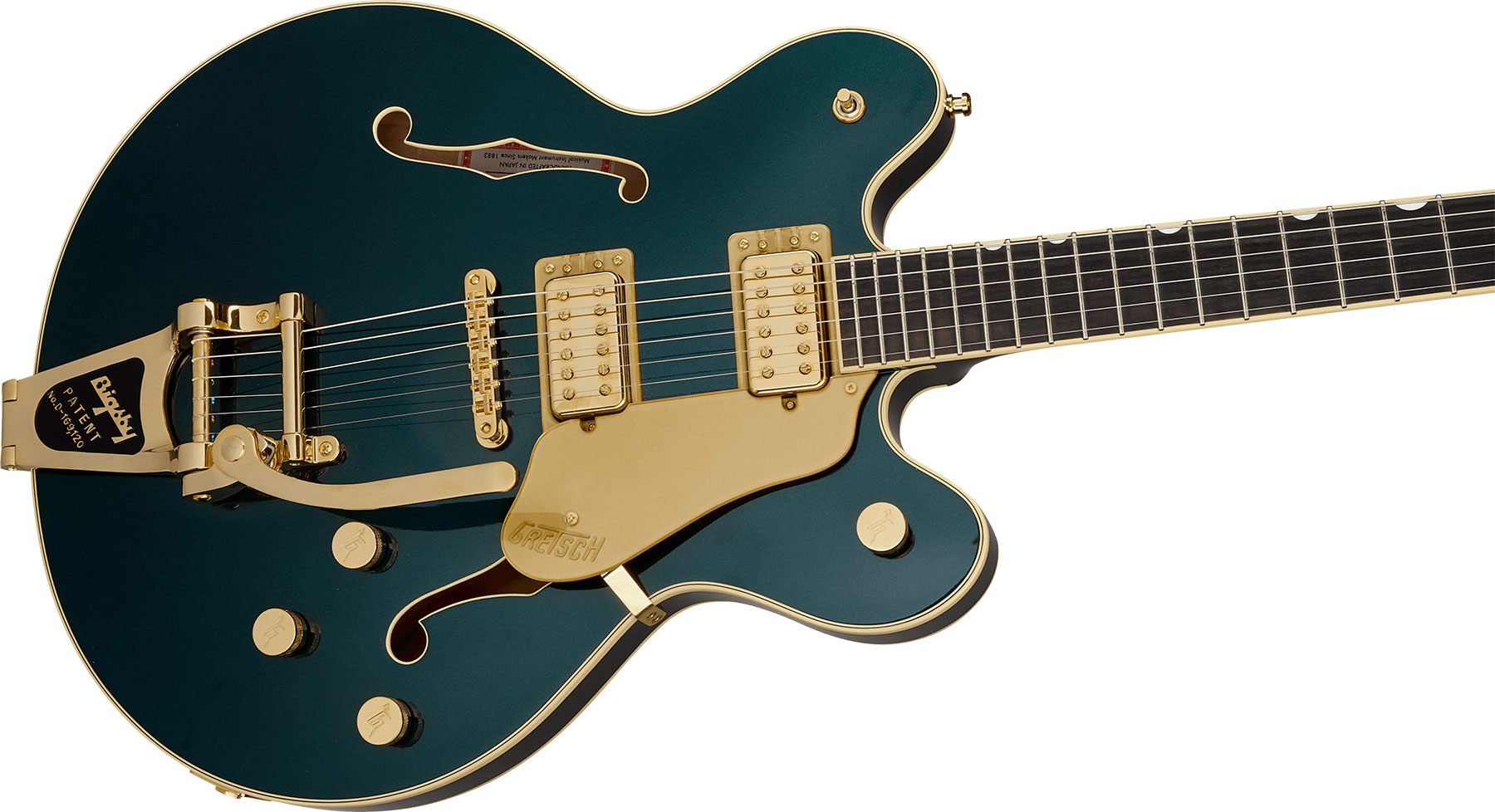 GRETSCH Professional Collection Broadkaster LX Center Block with String-Thru Bigsby and Gold Hardware (2400760848) electric guitar provide modern Gretsch tone with exceptional performance. Featuring the powerful Pro Twin Six™ humbucking pickups and a redesigned Channel Core™ center block, the Broadkaster® Jr. LX guitars are designed for full-spectrum sound at high volume, providing the flexibility and control you need to explore modern sonic territories.