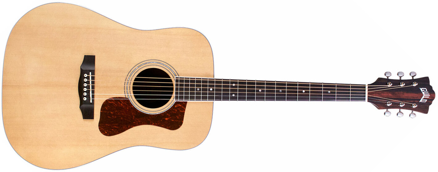 Premium appointments include a mother-of-pearl rosette, Guild Peak headstock logo and pau ferro fingerboard and bridge. A soft cutaway provides easy access to upper frets, and a Fishman Sonitone pickup with volume and tone controls makes plugging in and playing a breeze.