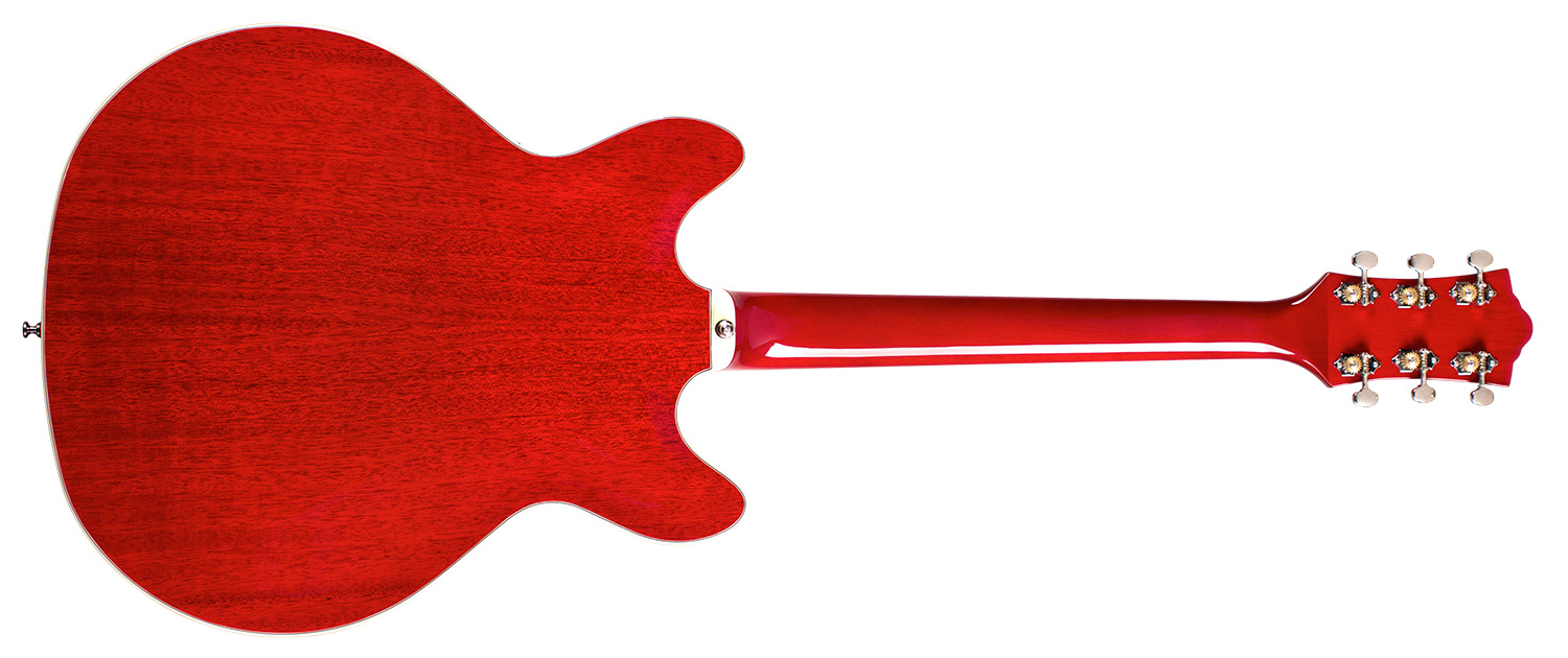 Guild’s most iconic electric guitar is now available to a whole new range of players. Expanding on the double cut body shape made famous by the Guild Starfire, the GUILD Newark St. Collection Starfire I SC (GU286) features semi-hollow body construction utilizing a mahogany center block for reduced feedback and clear sustain. Retaining the airy, crisp tone you would expect from a semi-hollow body, The Cherry Starfire I DC features an elegantly arched mahogany top, back, and sides; while the Pelham Blue model features an elegantly arched maple top, back, and sides. The 24 3/4” scale length and modern thin “U“ neck profile provide a fast, smooth playing neck, while the 18th fret neck-to-body joint provides easy access to the upper register of the fretboard. Premium Guild Vintage 18 tuners with 18:1 gear ratio and Tune-o-matic bridge ensure the strings are accessible and in tune. Rich, vintage tone is injected by Guild’s own HB-2 Alnico II humbuckers, and the push-pull coil splitting feature allows for singing, single coil tones from either pickup. All of these features come standard on the Starfire I platform. Available in Cherry Red. For those looking for something a little extra, the Starfire I DC GVT comes equipped with Guild’s vibrato tailpiece featuring a roller tension bar for additional tonal versatility.