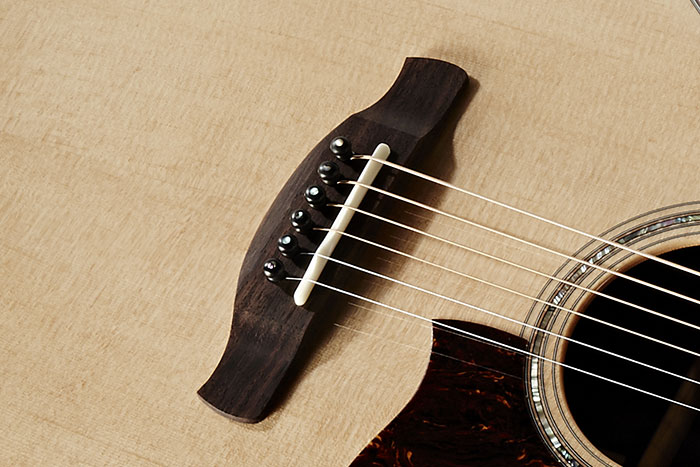The bone nut was chosen for its ability to transfer string vibration naturally. The thicker-than-ordinary 4mm bone saddle improves intonation accuracy.