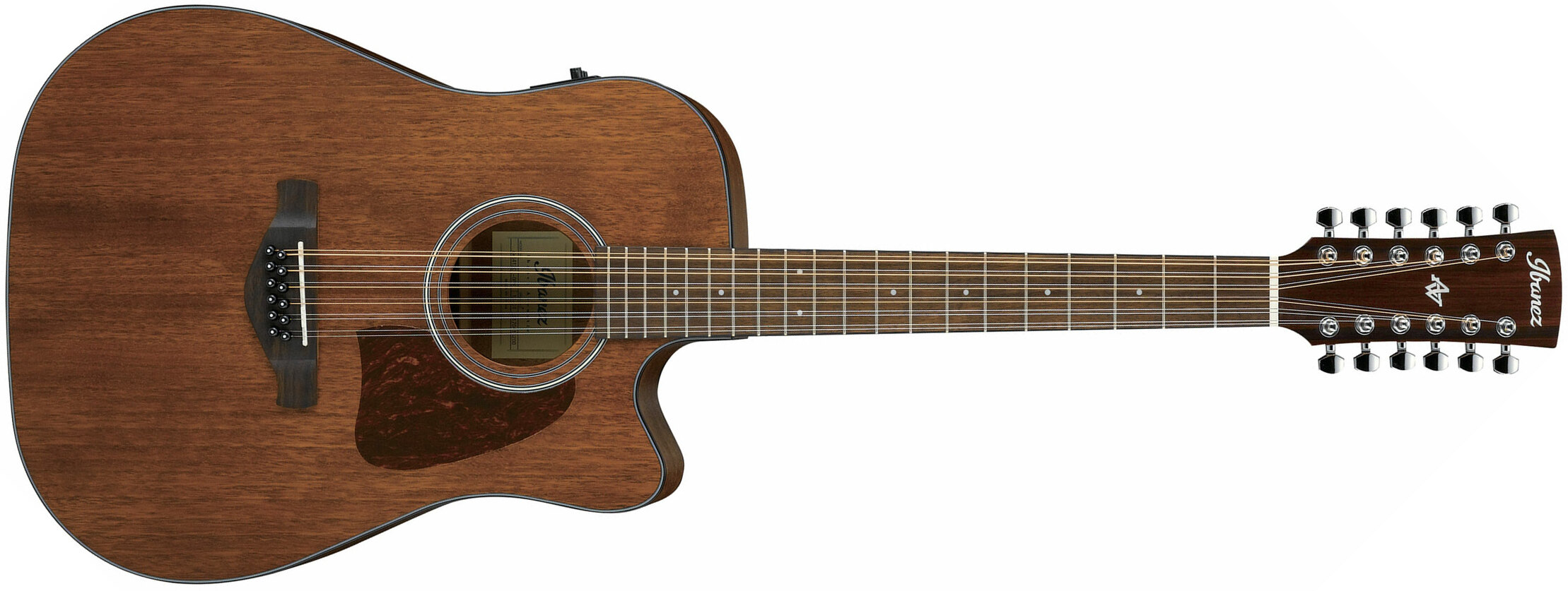 The all-Mahogany with solid top IBANEZ AW5412CE OPN is a powerful and versatile 12-steel string acoustic/electric guitar.