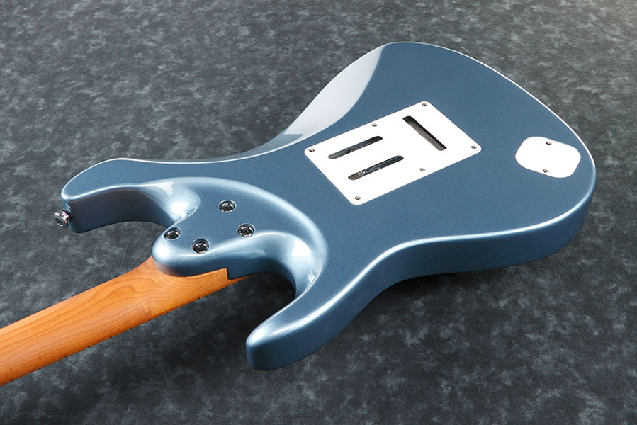 Ibanez Prestige AZ2204 Ice Blue Metallic : Even though Ibanez is thought of as a modern guitar brand, we have decades of accumulated knowledge and a history of pushing the boundaries. The AZ series carries with it all of the hallmarks of these tried and tested Ibanez qualities: the smooth oval neck grip, the well balanced asymmetrical body shape, and the neck heel allowing unrivaled playability.