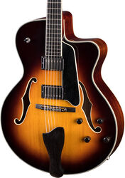 Featuring traditional construction (Spruce top, Maple back/sides, three pieces Maple set-neck, 22-frets Ebony fingerboard) and mini humbucking floating pickups, the IBANEZ Hollow Bodies Made In Japan George Benson GB10 NT electric guitar is a top choice for traditional or Fusion Jazz.